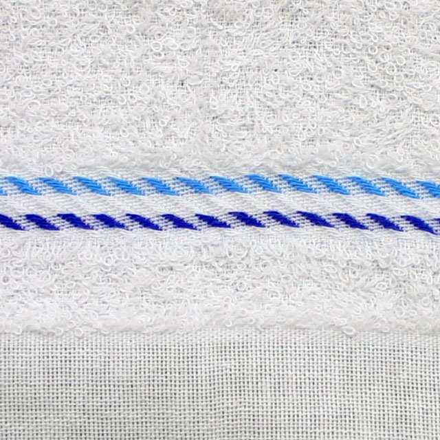 | 説明 | カラフルなブルーのラインを施した平地付きのオーソドックスな白タオルです。 清潔感、爽快感が感じられ、人や場所を選ばないデザインとして数多くご利用頂いております。 |