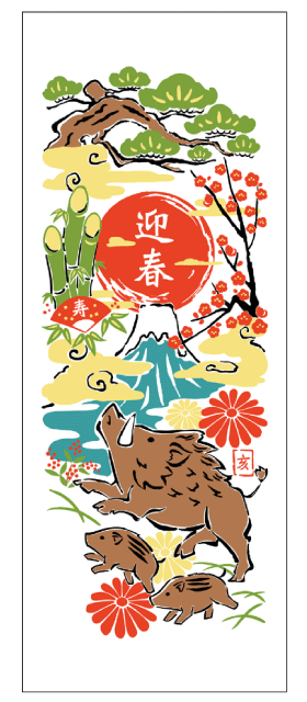 一般柄手拭いホーム>亥柄干支手拭い | 2019年亥年手拭 | 年賀手拭いの川端株式会社