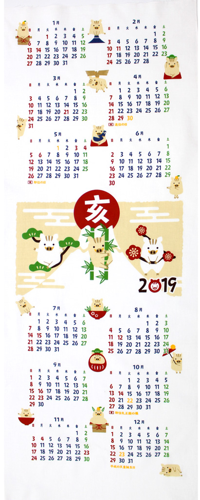 平成31年度(2019年)の年賀のご挨拶用の干支の手拭いの一覧です。