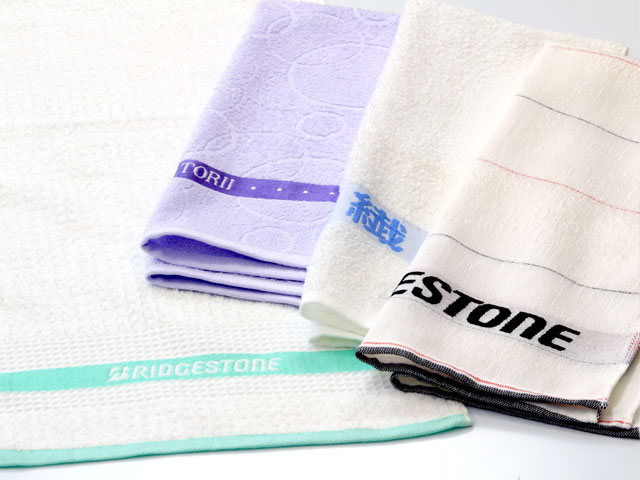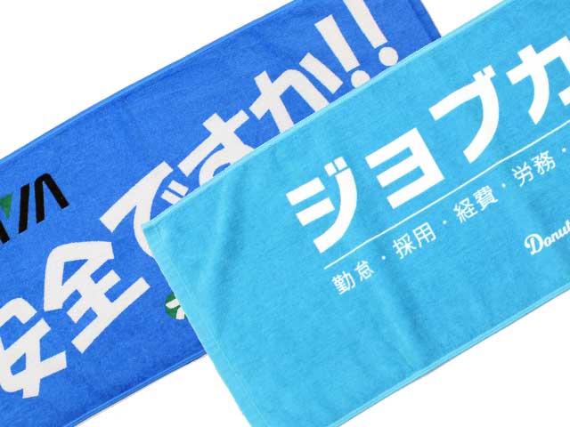 捺染タオル温泉等でよく使われるタオルです。おぼろにデザインを表現できます。比較的安価に作成できるオリジナルタオルです。有事の際や、社内での使用、急遽挨拶等に伺う場合に使用したりと色々と使えます。通常の名入れタオル等はもちろん、上記のようにロットや納期が長めでも安価な商品が選択肢としてあがります。